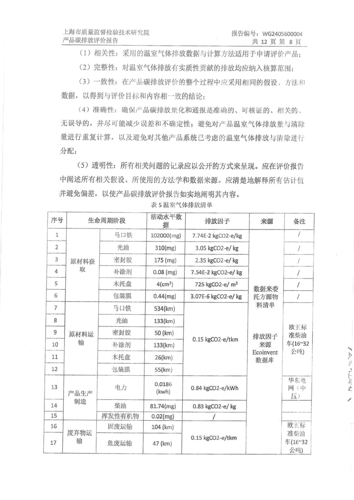 產(chǎn)品碳排放評價(jià)報(bào)告